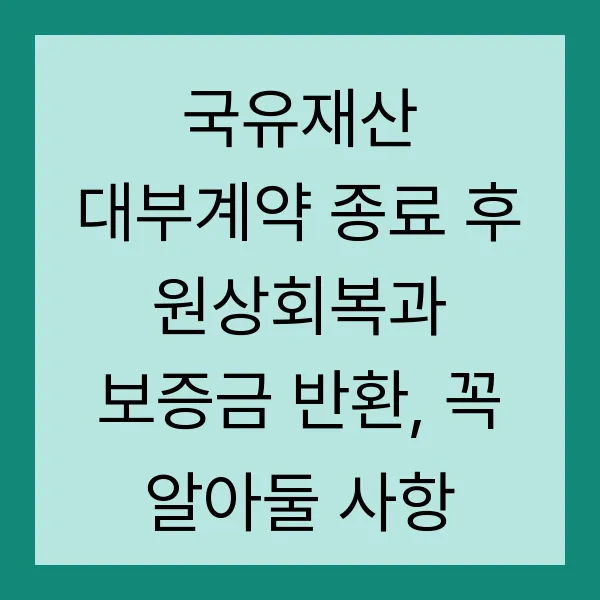 국유재산 대부계약! 끝났다고 끝이 아닙니다?! 원상회복과 보증금 반환, 생각보다 까다로운 함정들이 숨어있다는 사실, 알고 계셨나요? 계약 종료 후 예상치 못한 분쟁에 휘말리지 않도록, 꼭 알아둬야 할 핵심 정보와 대처 방안을 지금 바로 확인하세요! 원상회복 의무, 보증금 반환 절차, 분쟁 발생 시 대처 방안까지, 이 글 하나면 완벽 대비 끝!