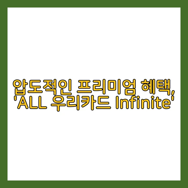 'ALL 우리카드 Infinite'는 우리은행의 최고급 프리미엄 신용카드로, 연회비가 국내전용 50만원, 해외겸용 50만원으로 상당히 높은 편입니다. 하지만 그에 걸맞은 차별화된 혜택들이 준비되어 있습니다.
