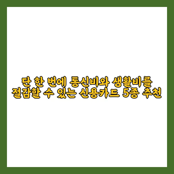 통신비와 생활비를 절감하고 싶으신가요? 오늘은 다양한 할인 혜택을 제공하는 신용카드 5종을 소개해 드리겠습니다. 실제 생활에서 자주 쓰이는 통신요금, 공과금, 교통비, 식비 등의 지출을 줄일 수 있는 최적의 카드들을 엄선했습니다. 개인의 생활 패턴과 필요에 맞는 카드를 선택하면, 단 한 번에 통신비와 생활비를 효과적으로 절감할 수 있을 것입니다.