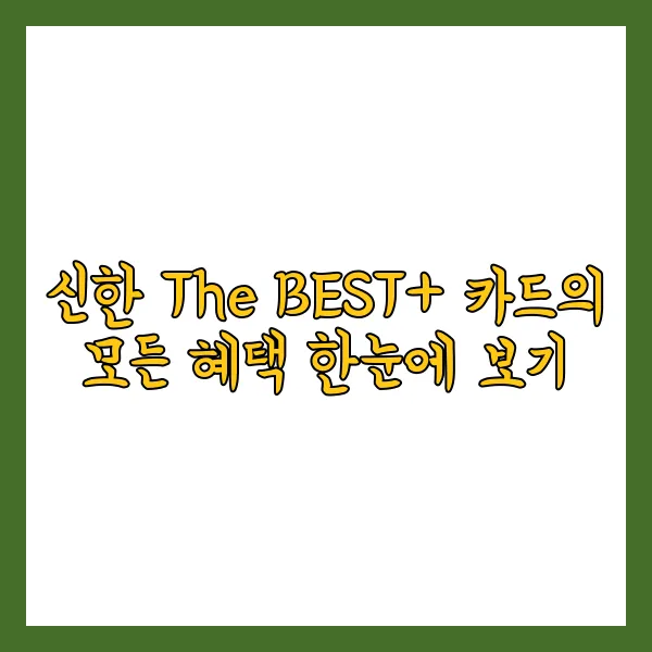 안녕하세요 여러분! 오늘은 제가 정말 좋아하는 신한 The BEST+ 카드의 놀라운 혜택들을 소개해 드리려고 합니다. 이 프리미엄 카드는 제 일상과 여행을 한층 더 풍요롭게 만들어주고 있답니다 :)