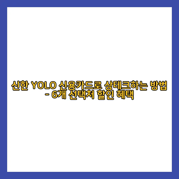 상테크의 달인이 되고 싶으신가요? 그렇다면 주목해주세요! 오늘은 신한 YOLO 신용카드를 활용한 상테크 팁을 알려드리겠습니다. 이 카드는 상품권 구매로 간단히 실적을 채울 수 있을 뿐만 아니라, 6개 선택처에서 최대 20%까지 할인받을 수 있어 상테크에 최적화된 카드라고 할 수 있죠.