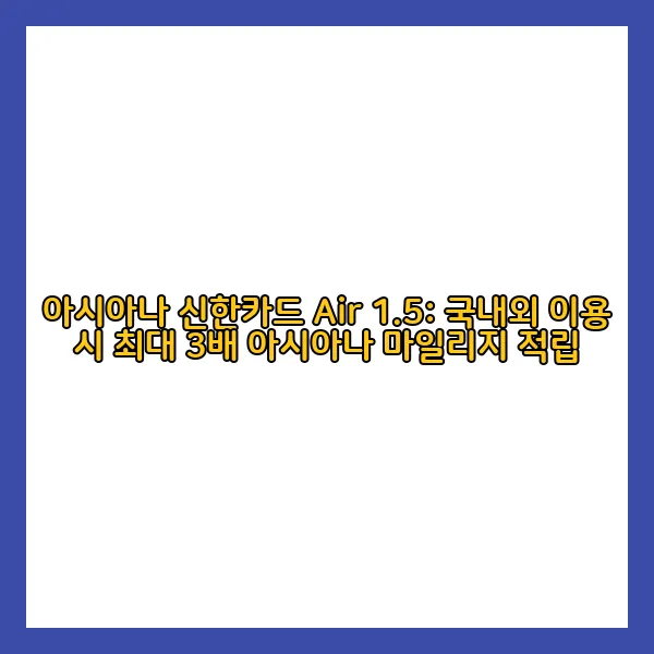 아시아나 신한카드 Air 1.5: 국내외 이용 시 최대 3배 아시아나 마일리지 적립