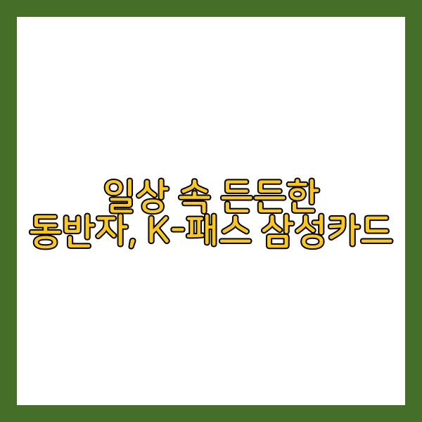 동행할 든든한 파트너, K-패스 삼성카드에 대해 소개해 드리고자 합니다.😊 이 카드는 출퇴근, 등하교 시 이용하는 대중교통에 최적화된 혜택을 제공하여 교통비 부담을 덜어드리는 것은 물론, 일상 곳곳에서 다양한 혜택을 누릴 수 있는 유용한 카드입니다.