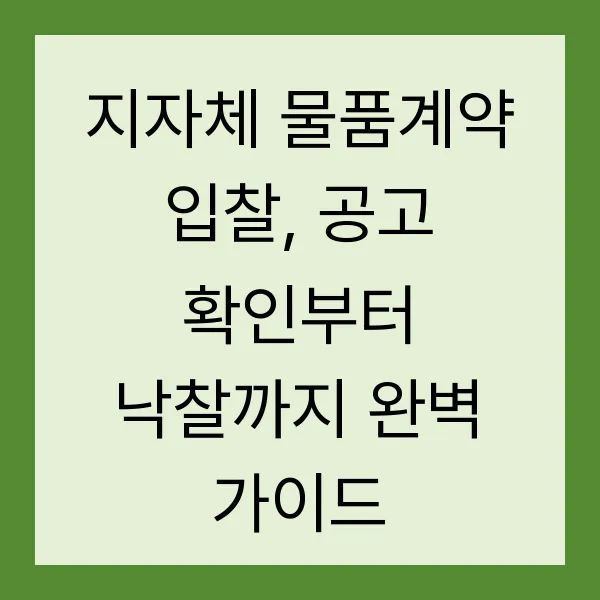 지방자치단체와의 물품계약은 공공조달 시장 진출의 핵심이지만, 복잡한 절차는 기업들을 곤란하게 하곤 합니다. 이 가이드는 지자체 물품계약 입찰 과정을 공고 확인부터 낙찰까지 완벽하게 분석하여, 성공적인 입찰 전략 수립을 위한 필수 정보를 제공합니다. "나라장터" 활용법, 제안서 작성 팁, 계약 체결까지, 이 글 하나면 모든 궁금증이 해결될 겁니다!