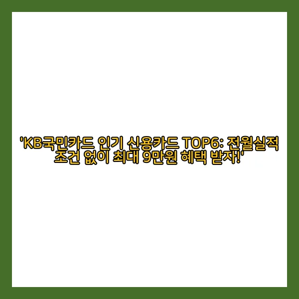'KB국민카드 인기 신용카드 TOP6: 전월실적 조건 없이 최대 9만원 혜택 받자!'