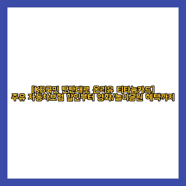 KB국민카드의 프리미엄 카드 '탄탄대로 온리유 티타늄카드'는 운전자의 일상을 든든하게 지원하는 다양한 혜택을 제공합니다. 주유비 할인과 자동차 보험료 청구 할인은 물론, 영화관람과 놀이공원 이용 시 혜택이 가득해 운전과 여가를 한 번에 아우르는 완벽한 카드라 할 수 있습니다. 이제 이 카드의 장점들을 하나하나 살펴보도록 하겠습니다.